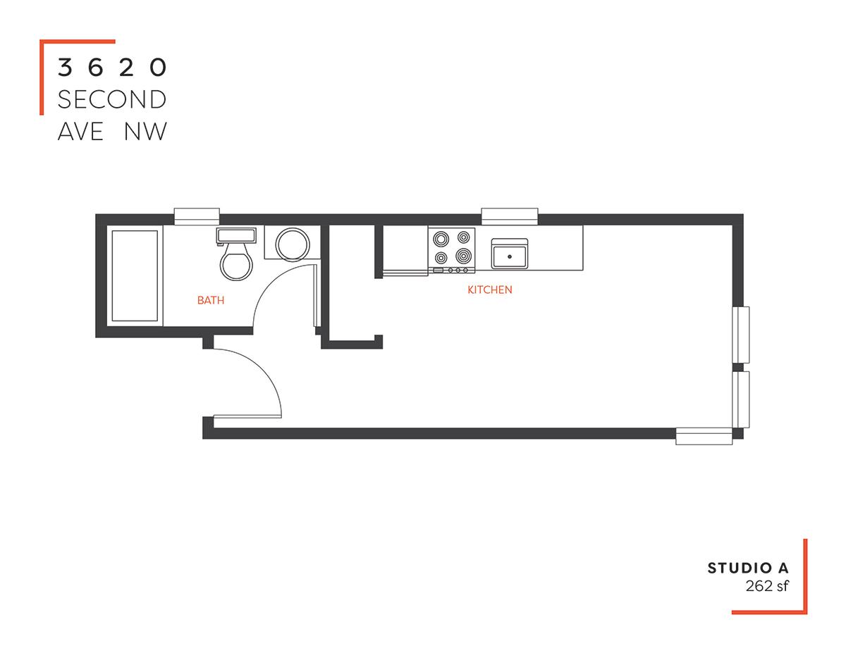 Floors 2 and 3: The top two floors consist of 3 apartments per floor with unit sizes ranging from 244- 278 SF.